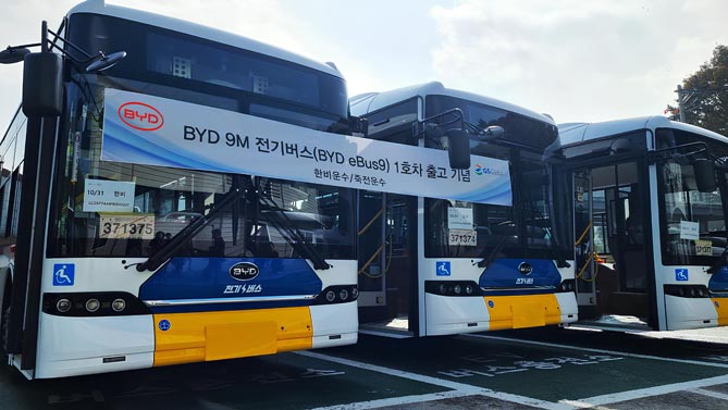 10月31日,比亚迪韩国分公司正式在韩国市场推出了BYD eBus9纯电动大巴车型,并在位于京畿道龙仁的韩非运输场站举行了纪念该车型的1号车辆交付仪式。比亚迪韩国分公司代表、比亚迪商用车的官方进口商GS Global负责人及韩非运输负责人出席了本次活动。