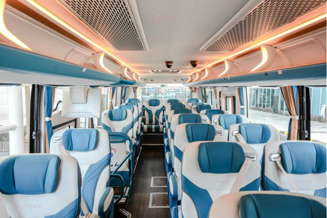宇通C11E 2+1座椅青山碧水款是宇通客车量身打造的高端定制新能源巴士,该车内饰采用传统元素与现代科技相结合的设计,为国风赋予了新的韵味。内慧外秀、里面俱在,这款车配备定制化人体工学商务座椅,给乘客带来升舱的体验和居家式的舒适,极大提升乘客的出行品质,并采用定制软包大顶,能有效保持车内安静环境,带给乘客乐享其“乘”的高端、舒适乘坐体验,得到体验官的交口称赞。“这次跨城旅程让我有了高铁商务舱的乘坐感受”、“国风内饰设计让人眼前一亮”……在宇通客车强大的制造基底与创新基因的双重加持下,让乘客对于高端出行有了全新的定义。