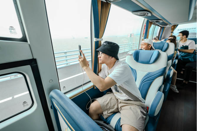 在深中通道通车首日,深中大桥迎来了首批香港大型旅行团,这批由通行口岸出发的游客,是首批由该通道前往内地旅游观光的游客。可以说,宇通高端新能源客车实现深中通道的双向通航,不仅仅为大湾区搭建起了互联互通的桥梁,同时也为打造大湾区“一小时通勤圈”和增强通勤幸福感加码赋能,给两岸人民的交流往来、商务出行和日常通勤提供更加优质、舒适的高端出行新选择,刷新两岸市民出行“幸福指数”,引领高端出行新未来。