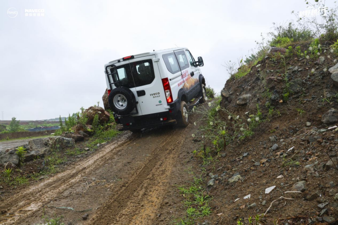 老程:两个字,惊艳!依维柯欧霸·山海让我感受最深的地方,就是车子的越野能力特别惊艳。今天是泥地的状态,因为3.0T的动力很足,像20°-30°的那种坡,用高速四驱就能上,然后稍微陡一些,加一些角度的时候,加一个中锁,或者再加一个后锁,完全没有问题,如履平地。