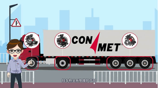 康迈凭借 “长寿命、可视化、免维护”的产品特点和创新技术,不仅在主车上深受用户认可,而且为挂车用户提供了一套高效、经济、可靠、安全的主挂一体化轮端解决方案。通过将主车与挂车的轮端技术进行整合,康迈轮端采用轴承游隙预调整技术和油润滑,以及高精度轴承和低摩擦油封,可有效降低滚动力矩、节省燃油消耗、大大降低故障率;此外,还为用户去除了传统轮端挂车进站做常规维护保养时间和维保成本,同时减少了因主车闲置等候而造成的资源浪费,为用户实现真正的省时、省钱还省心。