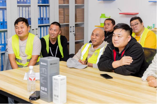 在今年8月末举办的“康迈关怀·卡友关怀”淮安站活动上,康迈曾到访极兔淮安转运中心,为一线工作人员送上秋日关怀,并开展系列轮端安全知识普及,旨在提升运输团队的专业素养和安全意识。此次拜访极兔南京总部,康迈再次跟一线运输人员探讨康迈轮端安全运输经验,与车队管理人员深入交流对话,共同为双十一双十二快递旺季的安全运输工作做好全面准备。