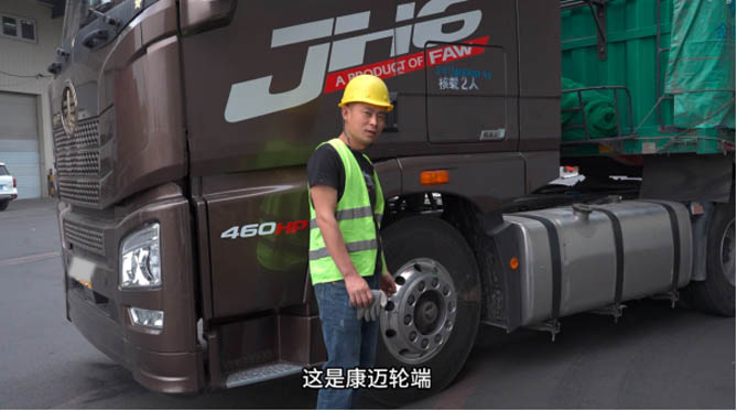 隋师傅入行不久,便发现传统打黄油养护的方式,十分繁琐、耗时且成本高,急需找到一种更高效的替代方案。康迈免维护轮端凭借其省时省钱的优势,成功吸引了他的注意。21年8月,隋师傅购入了一台解放6×2牵引车,且指定要在前桥装配康迈免维护轮端。