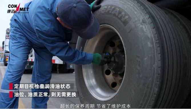 康迈免维护轮端无需定期维护保养,用户只需定期检查润滑油油质、油位、油封状态,即可早期排除安全隐患,减少了传统脂润滑轮毂的维护保养时间。
