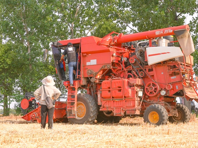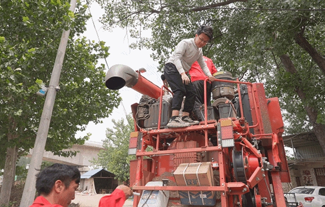 而在南阳市宛城区汉冢乡孔庄村李王庄大队的一片麦田里,齐萍正用对讲机指挥着驾驶收割机的丈夫开往下一片麦田。齐萍和丈夫是南阳本地人,16年前,夫妇二人借钱购买了一台收割机,加入了职业麦客的行列,从那时起,他们就成为了潍柴的“铁粉”。“老家的麦子马上就要割完了,下一站我们要去周口,河南割完后就去河北、山东,去年我们最远去了天津。”