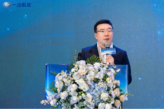(一汽解放营销总部副部长,销售公司副总经理 张立国发布“暖心护航计划2.0”照片)
