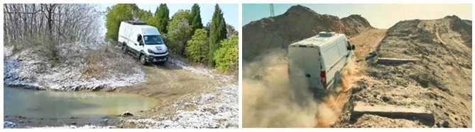 应用场景复杂多变,出警路况环境恶劣是车辆在执行任务过程中经常需要面对的问题。依维柯越野车装备了先进的“全时四驱”系统、“三把锁”以及专为各种地形设计的“全地形轮胎”,因而拥有着铺装路面、湿滑泥地、冰雪路面、岩石山地、淤泥沙地、超强脱困等全地形模式,轻松应对各种路况。
