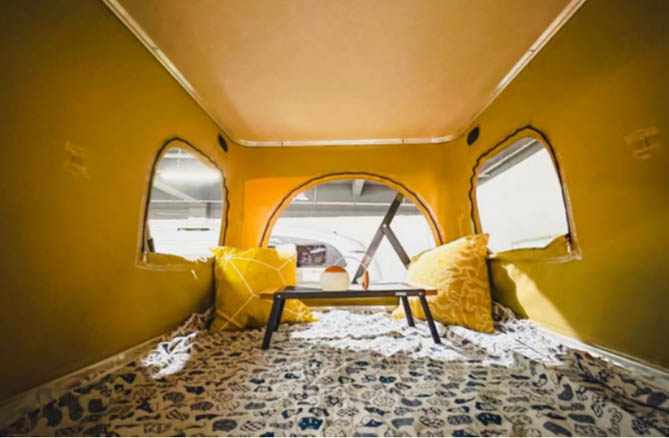 得意宿营车的非承载式车身以及超大内部空间,则为改装爱好者提供广阔的自由发挥空间。对于热衷于野钓的玩家而言,在车身外挂板加装鱼竿固定架,巧妙解决钓具收纳难题;偏爱骑行的露营者,在车顶行李架拓展自行车支架,抵达山区后便可尽情享受骑行的乐趣;聚会时,利用侧挂水箱和遮阳篷可以轻松搭建起一个临时的户外厨房;如果你享受独处的时光,还可DIY专属于你的创作空间。
