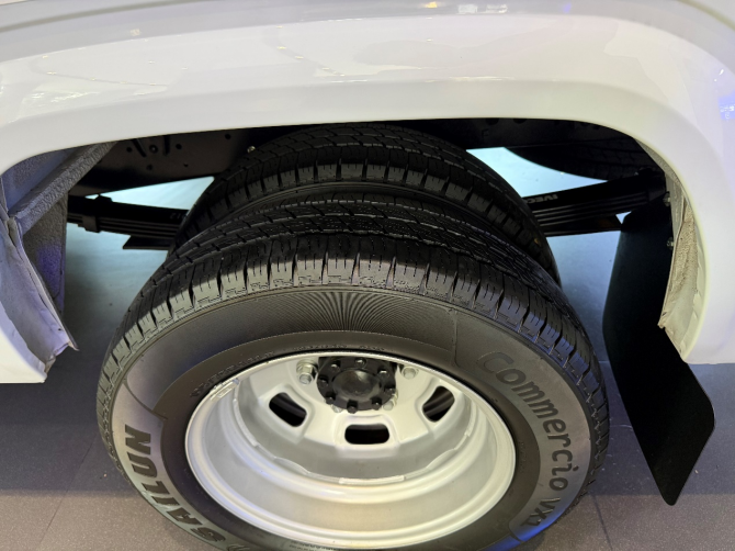 车辆采用前通风盘后盘的制动形式,双胎车型的前后轮均为固特异195/75R16LT型轮胎。