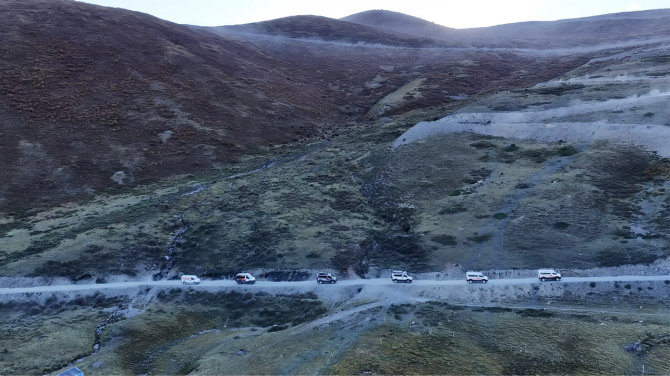 翻过折多山垭口,车队来到了又一处打卡圣地——格迪拉姆天空之城,这是一个站在山顶可以同时看见两座雪山的地方,景色秀美无与伦比,但道路艰险同样困难重重,对车辆的通过性有着很高的要求。
