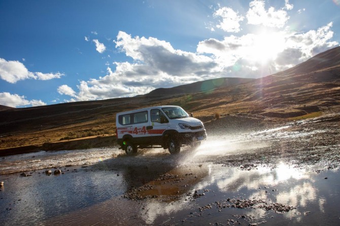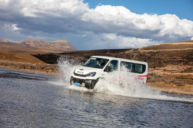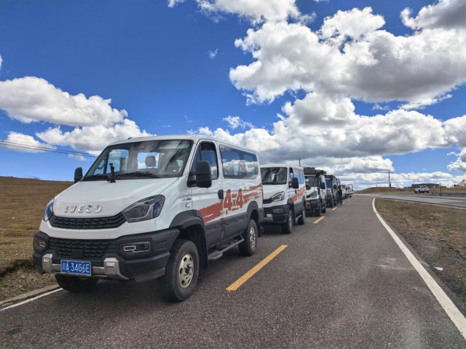 在《康定情歌》的悠扬旋律中,六辆依维柯欧霸·山海越野车如钢铁雄狮般列队启程。车队自新都桥镇启程,经天路十八弯、铁匠山、纳海、则巴村,全程总计约400公里,涵盖柏油路面、连续下坡山路S弯道、涉水路段等复杂路况,依维柯欧霸·山海亦将以全方位的卓越性能,全程展现专业越野的硬派实力。