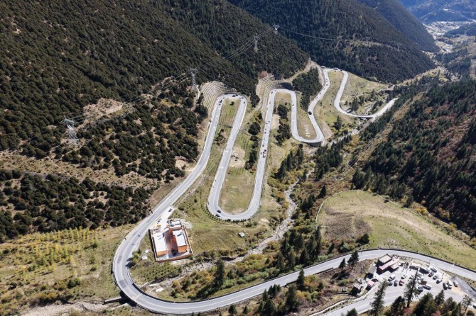 天路十八弯是318国道川藏线雅江至理塘段的标志性路段,以海拔4659米的剪子湾山为地理坐标,川藏公路在此形成12公里连续盘山路,最大坡度7%,最小转弯半径15米,对车辆动力分配与操控稳定性提出极致考验。