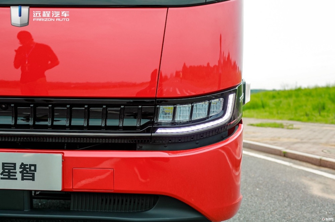 科技配置满满的星智当然也要匹配一个潮酷的形象,远程星智的造型设计简洁前卫,大灯与格栅一体式的贯穿设计,让它显得格外科幻,标配LED大灯和LED日间行车灯,无论白天还是夜晚,穿梭在城市里都称得上一道特别的风景。一体式的导流罩和隐藏式雨刷,在轻卡中都属少见,造型上更显流畅外,也确实减少了风阻,提高了续航,这一点对于一款新能源轻卡来说至关重要。