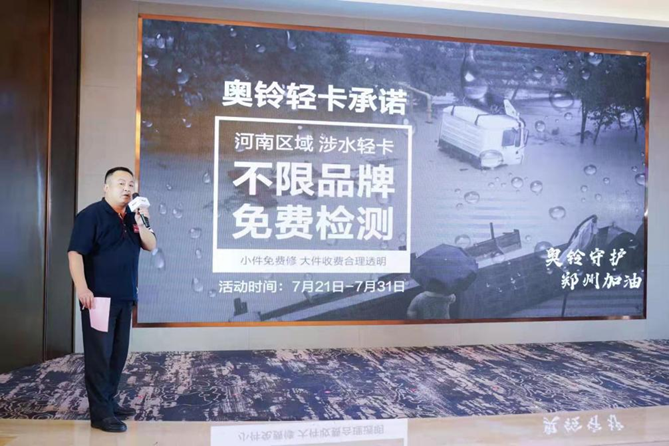 在今年7月中旬,河南遭遇极端强降雨汛情的时候,奥铃轻卡第一时间做出承诺——河南区域涉水轻卡,不限品牌免费检修,最大程度的降低轻卡司机损失;河南区域服务站和经销商更是积极出动救援车,以行动诠释“客户的生意就是奥铃人的命”。