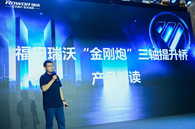 随后,时代事业部 瑞沃营销公司市场与商品规划部高级经理任锡强为现场所有嘉宾及直播间的朋友们详细解读本次发布会上市的福田瑞沃金刚炮(6x2悬浮桥)工程车。随着查超、治超政策趋严,两轴车合规总质量只有18吨,很多从事水泥、砂石、沥青、型材等运输的卡友,面临“不超载就挣不到钱”的困难。如何合规的前提下多拉多赚,成为卡友的关注点。福田瑞沃金刚炮(6x2悬浮桥)工程车搭载了福田汽车全新研发的智能悬浮桥,两轴三轴按需自动切换,兼顾了承载的需求和用车的经济性。整车轻量化的设计,在合规标载的情况下较同类两轴产品多拉5.5吨货。针对工程运输全勤高效的需求,福田瑞沃金刚炮(6x2悬浮桥)工程车,搭载了玉柴K05-240马力国六发动机+法士特10挡变速箱+457重载桥的黄金动力组合,动力强劲,脱困能力强。同时,智能悬浮桥配备ABS制动安全系统,智科车联网危险提醒功能,主/被动安全性能大幅提升,让卡友们在全勤创富的同时更加舒心、安心、省心。