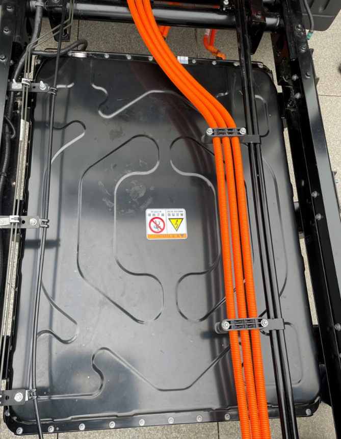 在电池防磕碰方面,恺达纯电轿卡采用第二代新能源商用车纯电专用底盘,电池内嵌式设计,电池包位于车架中间,底盘车架就是电池包的天然“防护墙”。这种设计还有一项好处,那就是电池包离地间隙大,整车重心更稳,装货货箱压低后不易干涉,可以兼顾整车操控性和保障电池安全。自带的底盘装甲也可以有效防止碎石冲击。