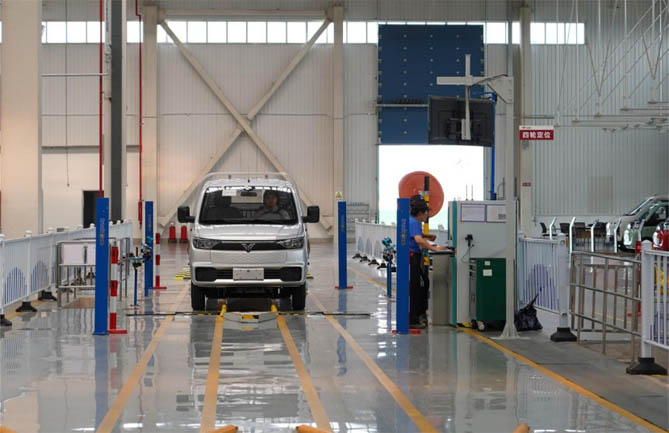 整车检验环节是产品驶出车间之前的重要步骤。雷驰·仁T30小卡经历了包括综合安规检测、EOL检测、充电功能检测等在内的多项下线检测项目,以及四轮定位、灯光-声级、侧滑、制动-轴重、车速、底盘、淋雨、绝缘安规等检测线检测项目。这些全面而细致的检测项目,确保了车辆在交付用户前已达到最佳状态。