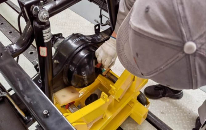 进入总装阶段,雷驰·仁T30小卡更是将严谨细致的态度发挥到了极致。每一个关键力矩由定值扳手紧固并通过点漆确认,确保每一个紧固点都达到标准要求。每一道工作液加注工序做到精准定量,每日开班前对加注量进行校准,确保加注精度。