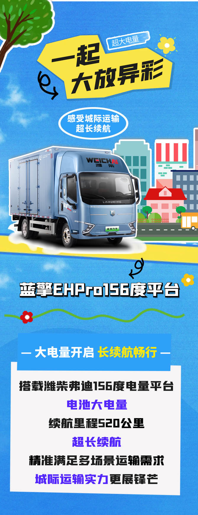 想要城际运输超长续航?来看蓝擎EHPro156度平台大电量轻卡!
