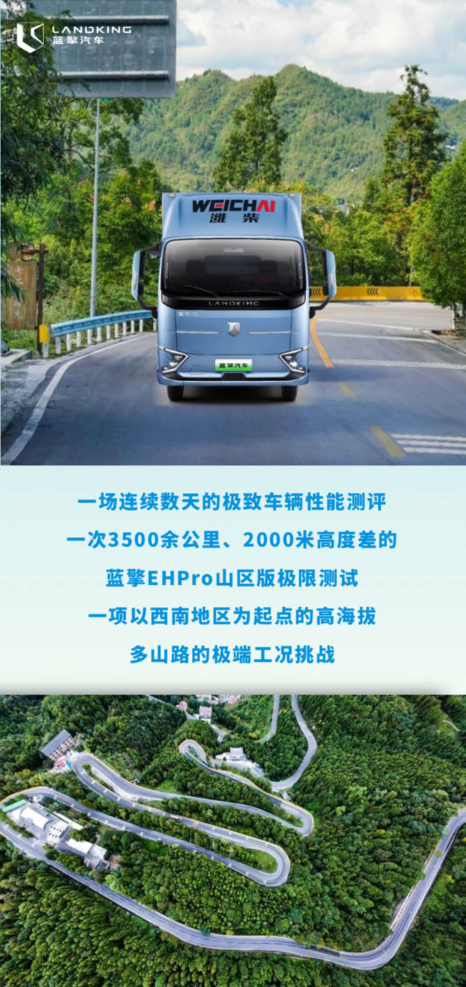 万水千山长征路,陡坡急弯任我行。此次挑战将依次在长征路八大历史场地打卡,在不同工况下展现蓝擎EHPro156度电量平台超级电卡的极致性能。应对激流险滩的稳定性、操控性考验,复杂道路的通过性,灵活性考验,重山峻岭的动力性、爬坡性考验以及高海拔区域的适应性考验,蓝擎EHPro156度电量平台超级电卡能否借助长续航、大电机、高承载、轻量化、强稳定、超安全等优势以“十边形”战士之姿凯旋而归?关注蓝擎轻卡官方账号,不要错过蓝擎EHPro每一站的精彩直播。