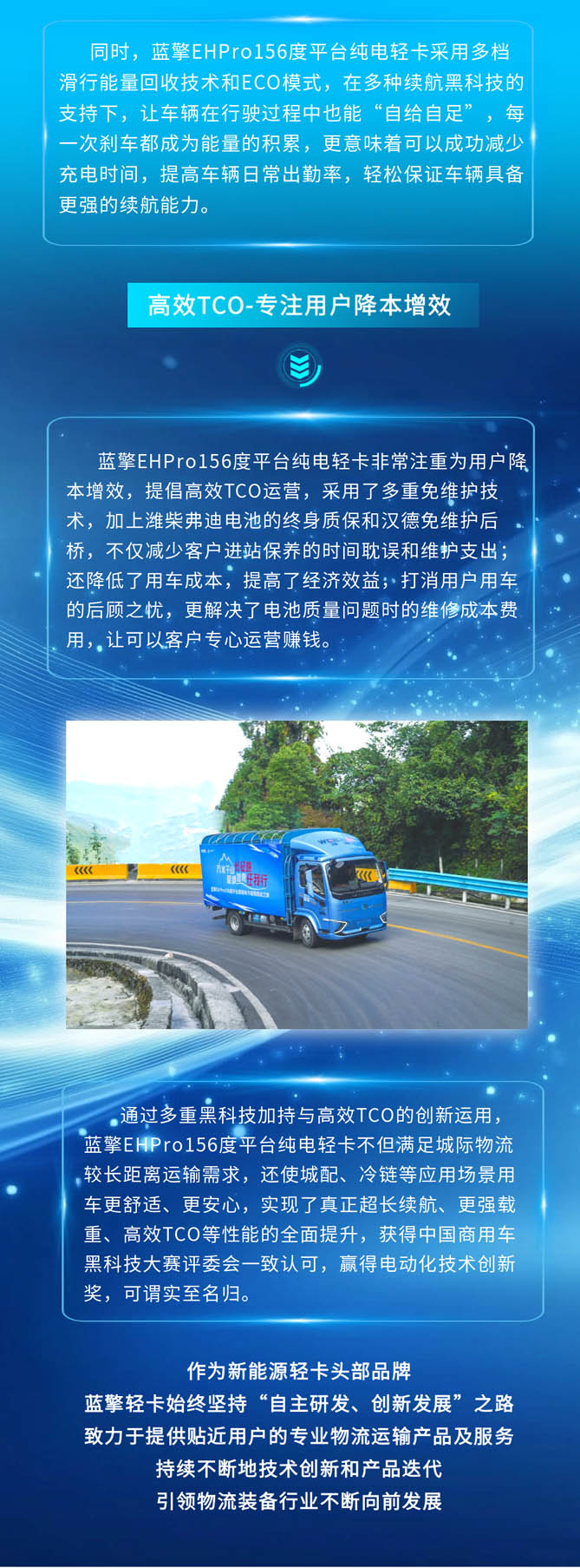 创新引领,科技赋能!蓝擎新能源轻卡荣获“电动化技术创新奖”!
