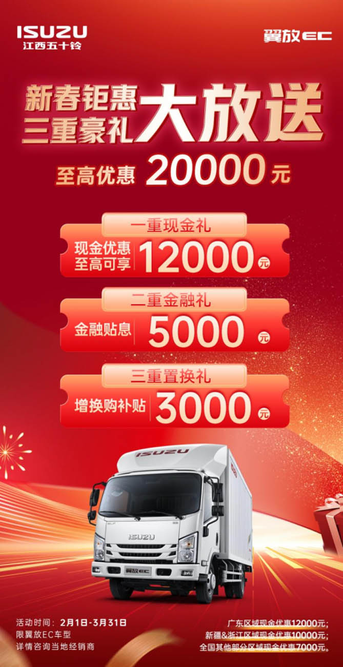 江西五十铃翼放EC新春钜惠来袭 三重豪礼助您开年“赢”战2025