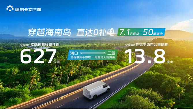 近期,福田卡文乐福先后在京津冀、海南岛开展了北线、南线能效续航实测。秉承从用户实际运营角度出发的理念,乐福通过真实运营线路、真实用户参与、真实装载货物,展现实际货运中的性能表现。