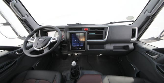 进入车内,骏铃A3驾乘升级,不仅空间大,储物多,液晶屏,功能全,而且全新内饰更豪华,皮质座椅软硬适中,支撑好,易打理,可卧+扶手+机械腰托更舒适,以贴心设计为车主打造“暖心之家”,极大提升了日常行车的舒适度。
