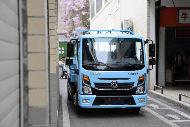 城配运输经常面临狭窄巷道、限高地库等挑战,而"任吾行"的灵活设计让这些问题迎刃而解:货厢可选3.8m-4.17m,适应不同货物需求;整车高度仅2.1m,轻松进出2.2m限高地库;货箱离地高度仅796mm,装卸货更省力,尤其适合水果摊贩、物流配送等场景。