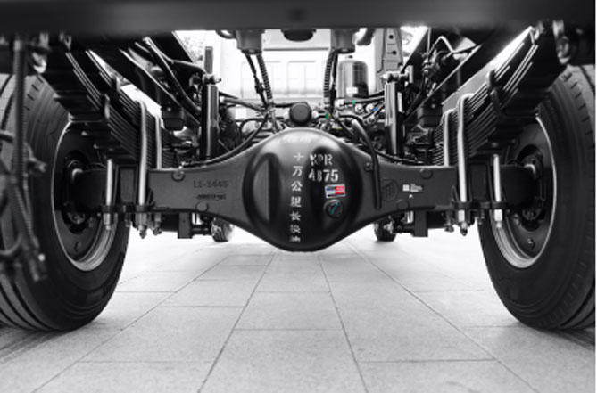 领航大G-F28T气体机轻卡车架采用750L高强钢,180mm直通大梁,较610材质强度提升30%以上,在重载情况下依然稳如泰山。行业首配6.0T NPR一体精铸后桥,较4.5T冲焊桥强度提升8.6%;后悬架采用8+6多片簧,厚度15.7cm,刚度提升31%,承载能力强毋庸置疑,商超满载、快递运输、城乡散杂重载,统统“稳如泰山”。