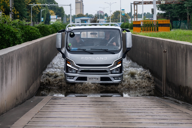 该机型搭载由时代主导、联合全柴与菱电开发的F28T涡轮增压发动机,排量2.723L却输出190Ps最大马力与460N·m峰值扭矩,低速扭矩较同平台提升84.7%,空载最高车速≥130km/h,载重5T时仍能保持超110km/h的高速性能。