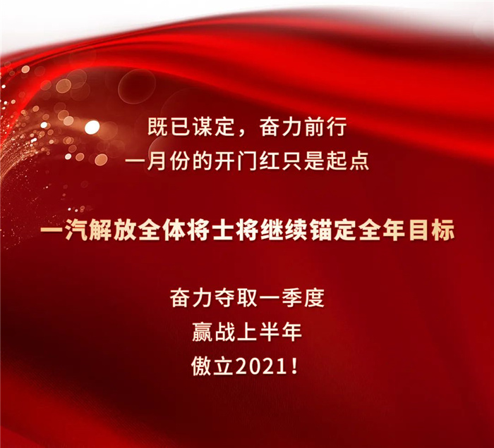 2月5日晚,一汽解放发布了2021年1月份产销快报,全月共销售整车7.91万辆,同比增加27.87%,其中,重卡销售7.02万辆,同比增加33.68%,打破了重卡月销量的历史记录。2021第一战,解放战的豪迈,赢得漂亮!