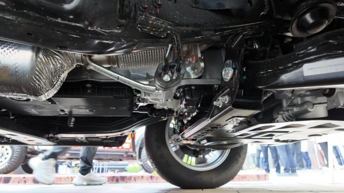 在安全性方面,整车的车身则采用了强化笼式车身结构,车身结构抗撞性强,特别是B柱采用六层钢板复合嵌套结构,碰撞时能⾼效吸收、分散撞击能量,为驾乘⼈员提供更为牢固的安全防线。其车架更是采用了两纵+横结构的设计,更适应极端路况环境下的侵袭,特别是悬架方面,采用了分体式球头带防脱销设计,更为耐造。