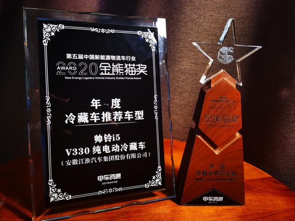 江淮帅铃i5-V330纯电动冷藏车荣膺“金熊猫·年度冷藏车推荐车型”大奖!本次获奖可谓实至名归,帅铃i5-V330纯电动冷藏车市场上性能和质量表现优越,不断赢得客户好评,获得行业推荐!