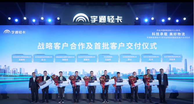 卓越的产品品质、越级的性能表现使得宇通新能源轻卡T系列产品成为城市物流客户高效、高价值、低运力成本解决方案的更优选择,一经上市即赢得快递配送、食品配送、医药冷链、供销物流、搬家、专用车等多领域头部客户的高度认可与信赖。活动现场,宇通轻卡与北京金砖再生、北京金成亚信、道路运输协会搬家与配送分会、北京京中亨通运输、河北供销物流、北京首佳物流、北京马大姐食品、北京万通利达物流等京津冀区域战略客户达成合作,并完成首批客户车辆交付。