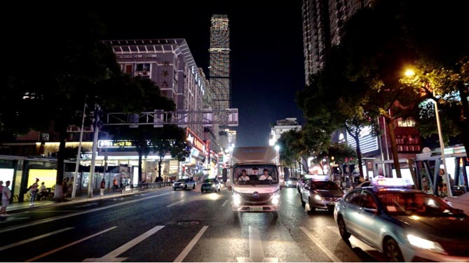 “江畔长沙驿,相逢揽客船”,夜幕下的杜甫江阁灯带层层点亮,身披流光屹立江畔,古韵生辉,游客络绎不绝,行车路况略有拥堵。奥铃智蓝HL超混轻卡以低速状态沿路行驶,虽然走走停停,但因为起步过程是纯电动模式,车辆并没有燃油发动机启动时怠速轰鸣声,频繁启停也不会产生油耗;并且起步过程中,有一种弹射般的轻松舒爽感,没有一般燃油轻卡起步时的晃动不适感,即使在满载状态,这辆车也能快速起步。