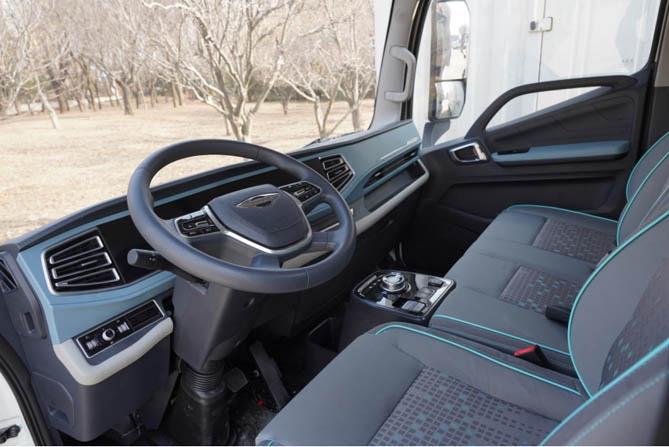 进入车内,驾驶室的设计更是与传统轻卡划清界限。中控台线条更像是家用MPV,造型十分大胆,而且还配备了双联大屏,属于商用电动车行业首配。10.25英寸全触控屏不仅进一步拉高内饰颜值,而且内置丰富车机功能,让卡友的城配生活更加丰富多彩。