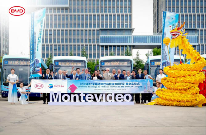 比亚迪向乌拉圭电动公交运营商CUTCSA交付100台12米纯电大巴