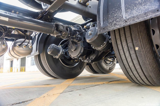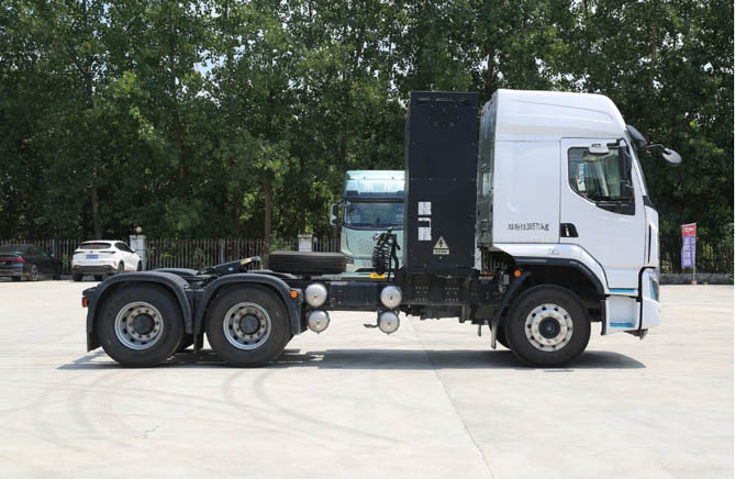 不仅如此,为了同步提高运效,乘龙H5 400度充换一体牵引通过35项轻量化技术,使整车自重轻至9.7吨,自重相比市场同类产品轻400kg以上。而充换电一体设计使其更能在5分钟内完成换电操作,真正实现了轻量快跑,为卡友争取更多的运输时间和收益。