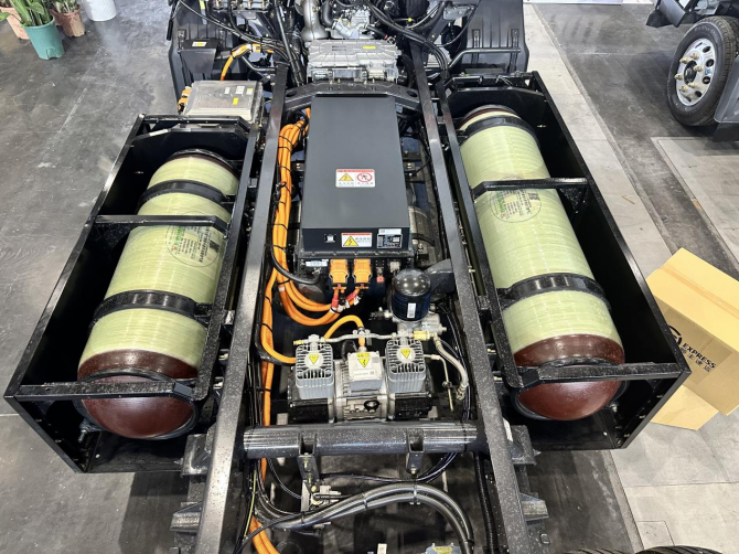 这款轻卡最大的亮点在于其独创的“CNG+电池电机”动力链设计,整车搭载1.5T CNG增程发动机,集成60kW发电机,动力充沛,爬坡有劲。标配的180L+140L双气瓶,满能状态下综合续航可达580公里,相较同类型甲醇混动车,具备热效率高、续航长和能源成本低的领先优势,无论是城市配送还是中短途运输,都能轻松胜任。加气过程仅需5分钟,大大缩短了补能时间,并且CNG相较甲醇补能网点充足,显著提升了运营效率。