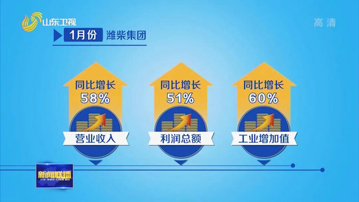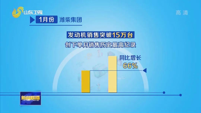 其中,得益于产品、业务和市场三大结构全面调整到位,1月份潍柴集团实现营业收入同比增长58%,利润总额同比增长51%,工业增加值同比增长60%。发动机销售突破15万台,同比增长66%,创下单月销售历史最高纪录。