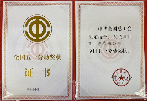 4月27日上午,庆祝“五一”国际劳动节暨“建功十四五  奋进新征程”主题劳动和技能竞赛动员大会在北京人民大会堂举行。会上,陕汽商用车荣获全国五一劳动奖状,受到大会表彰。