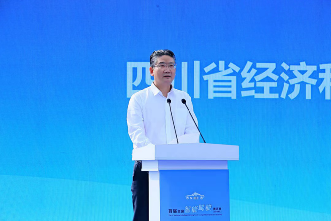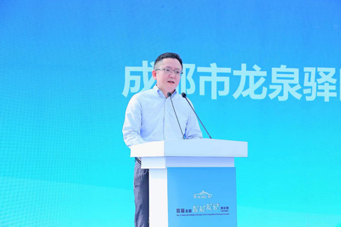 8月30日上午,首届全国智能驾驶(四川赛区)测试赛在成都经开区(龙泉驿区)中德智能网联汽车试验基地临时封闭测试区隆重举行。工业和信息化部装备工业发展中心主任瞿国春通过视频向测试赛致辞。