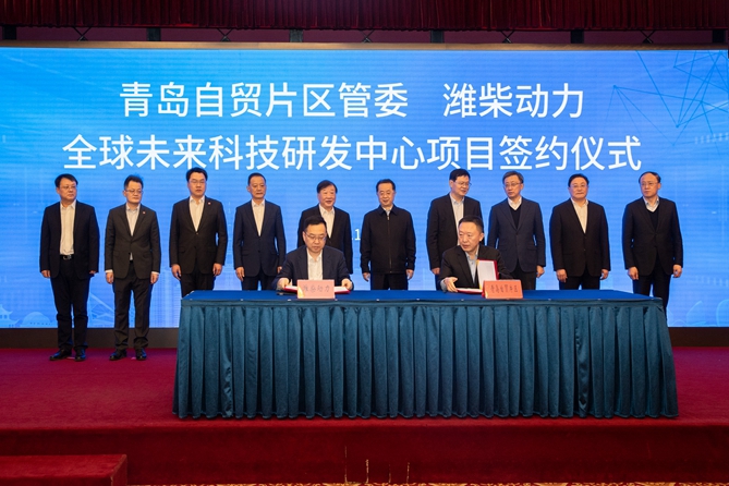 2021年12月31日上午8点,青岛市人民政府与潍柴集团签署战略合作备忘录,并就潍柴动力全球未来科技研发中心、潍柴动力(青岛)科技孵化中心、潍柴(青岛)海洋装备制造中心等项目签订一揽子战略合作协议。山东省委常委、青岛市委书记陆治原,青岛市委副书记、市长赵豪志,山东重工集团党委书记、董事长,潍柴集团董事长谭旭光出席活动并见证签约。