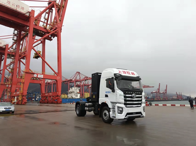 此次交付的上汽红岩充换一体纯电动牵引车,充分结合了连云港港口实际使用场景,全面强化了车辆的环保性、舒适性和安全性。