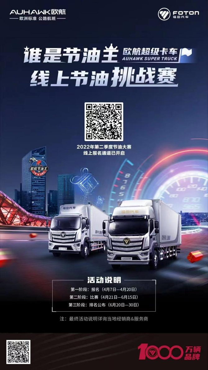 据了解,福田欧航欧马可第二届“ 欧航超级卡车线上节油赛”已经于4月7日开始报名,截至日期为4月20日。不同于一些线下比赛设置专门的模拟赛道进行评比,“欧航超级卡车线上节油赛”将用户运输的“真实场景”搬到了比赛中。既记录了用户使用过程中真实的油耗数据,又是对参赛车型的一种考验。