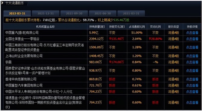 值得注意的是,中国重汽业绩也得到了社保基金等机构的认可。随着一季报的逐步披露,社保基金一季度调仓路径也浮出水面。数据显示,全国社保基金一一零组合一季度继续增持535.5万股,一共持股2394.12万股。北上资金增持869.81万股,中国太平洋人寿保险股份有限公司增持704.23万股。
