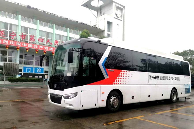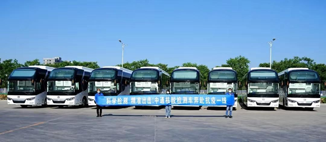 中通客车核酸检测车,具备机动灵活、检测高效、防护安全等核心优势,达到P2+生物安全实验室标准,并搭载医疗专用空气调节系统,配备高效新风过滤系统、医疗给排水系统以及全自动PCR分析系统,最快2小时即可出报告,单日最高可满足10万人次检测需求,极大缓解了各地激增的核酸筛查压力。中通客车移动CT,集成了5G实时传输技术、无接触扫描技术等领先科技,并支持远程医疗功能,为优化就诊流程、减少院感风险提供解决方案;中通客车旅团客车、纯电动公交等产品,也在为维护城市交通运营、护送隔离人员以及一线抗疫人员安全回家而日夜驱驰。