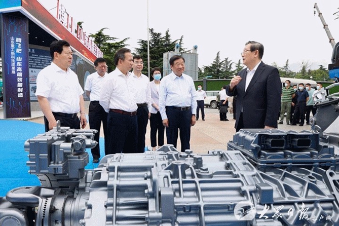 以“腾飞吧!山东高端装备制造”为主题的山东重工新科技成果展近日在山东会堂北广场举行。6月16日上午,全国政协副主席、中国科协主席万钢参观展览并调研科技创新工作,省委书记李干杰陪同。
