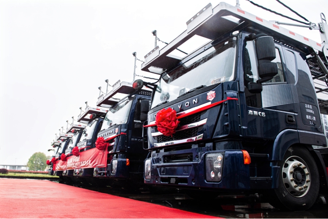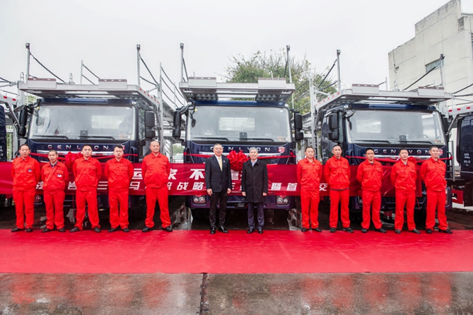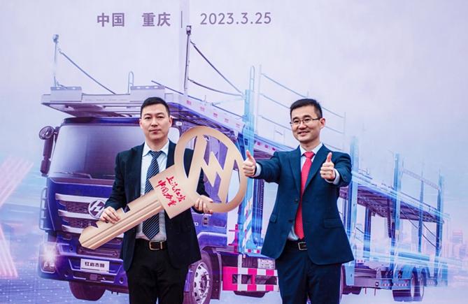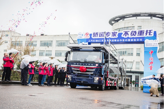 3月25日,上汽红岩&三羊马物流战略合作签约暨首批交付仪式在重庆举行,现场首批20台中置轴轿运车成功交付。